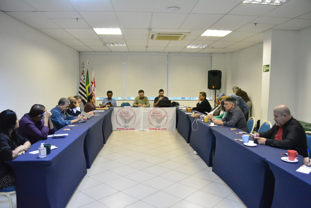 A diretoria da Federação dos Sindicatos dos Servidores Públicos no Estado de São Paulo (FESSP-ESP) reuniu-se nesta segunda-feira, 9 de março de 2026, no Centro de Convenções do Leques Brasil Hotel, para a realização de uma Assembleia Geral Extraordinária (AGE). O encontro foi liderado pelo presidente em exercício, Eduardo Becker, e pelo secretário-geral, Leonardo Quintiliano.